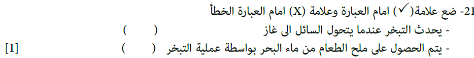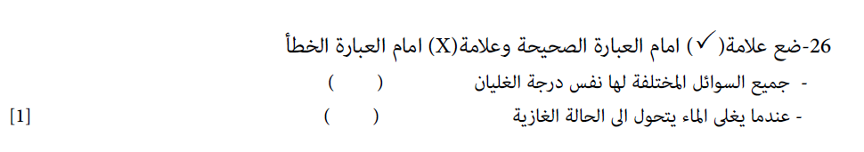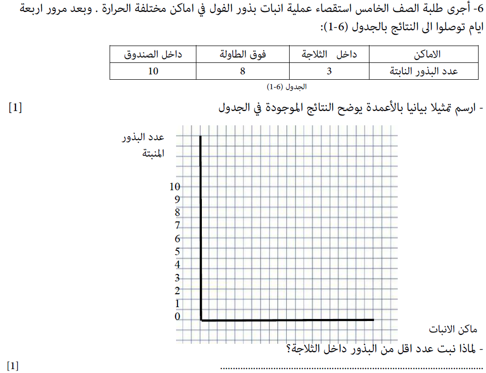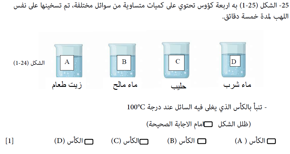 إختبار العلوم للصف الخامس الفصل الأول 2024-2