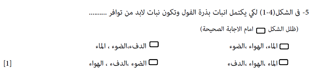 إختبار العلوم للصف الخامس الفصل الأول 2024-4