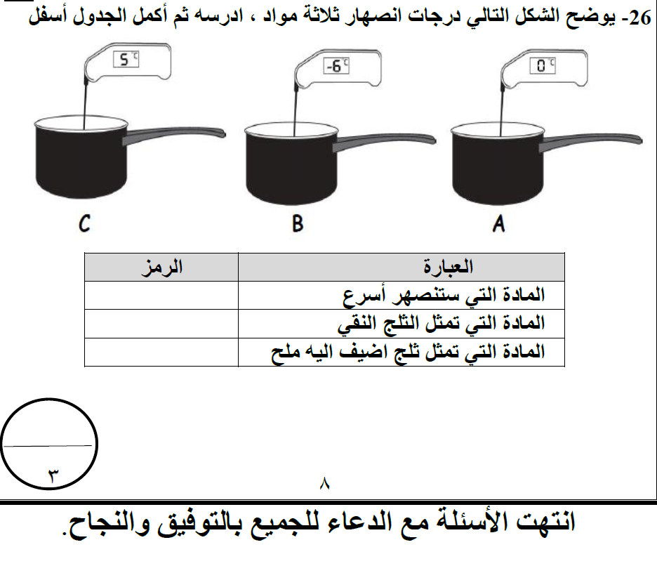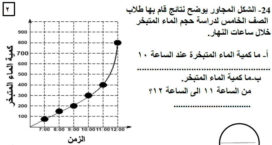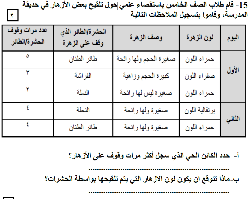 إختبار العلوم للصف الخامس الفصل الأول 2024-6