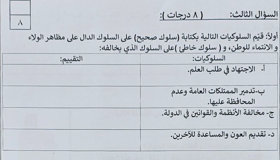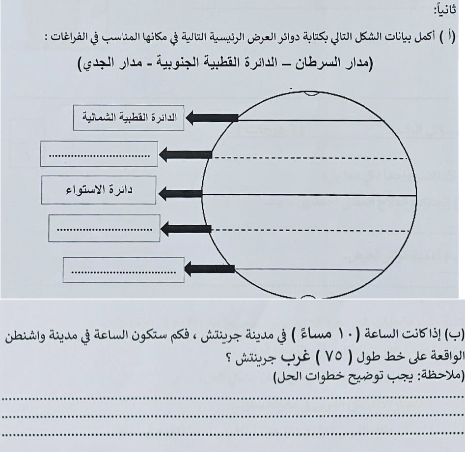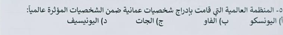 إختبار الدراسات للصف الخامس الفصل الأول 2024-1